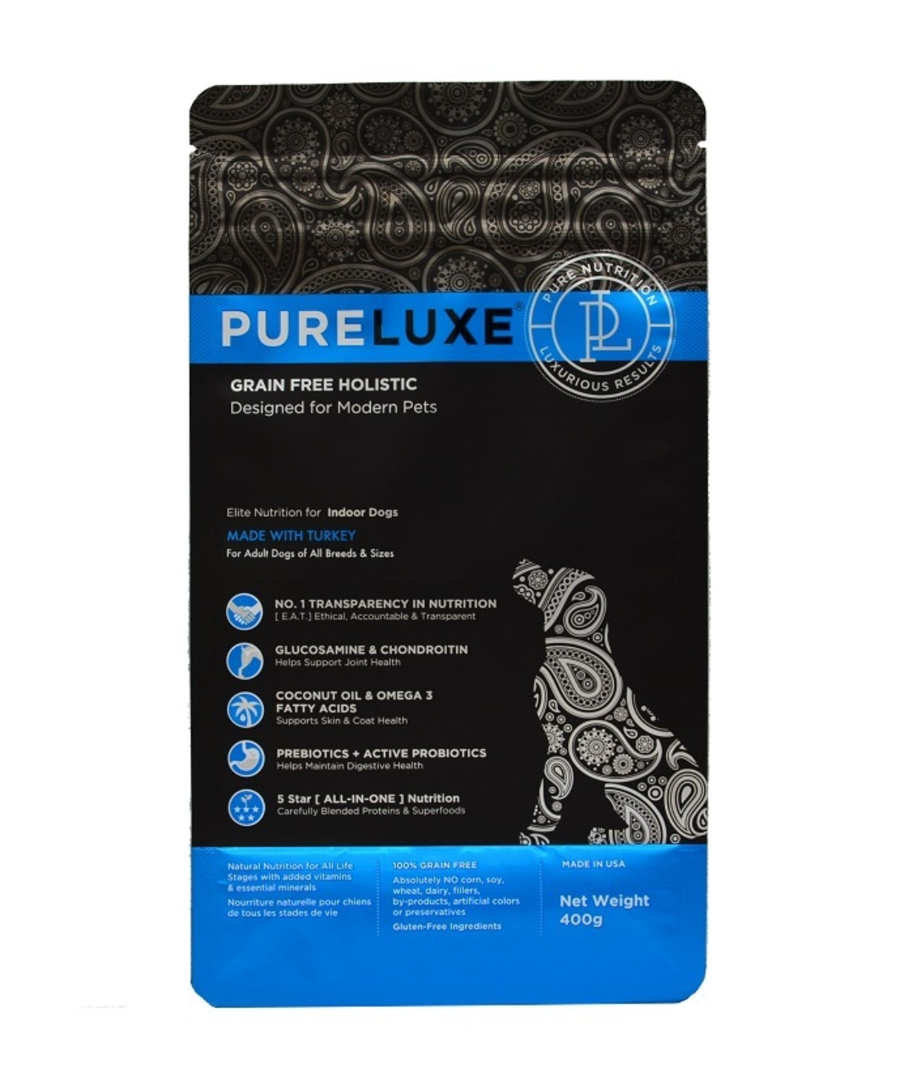 【原材料名】 骨抜きターキー(16%)、乾燥ターキー(16%)、レンズ豆(15%)、ヒヨコ豆(15%)、エンドウ豆(14%)、チキン脂肪(6%)(保存料として混合トコフェロール使用)、亜麻の種(3%)、天然香味料(3%)、骨抜きサーモン(3%)、乾燥サーモン(2%)、トマトポマース(2%)、ココナッツ油(1.2%)、昆布(1%)、塩(0.5%)、第二リン酸カルシウム(0.5%)、チコリ根(0.5%)、ビタミン類(0.1%)(ビタミンEサプリメント、ナイアシンサプリメント、D-パントテン酸カルシウム、ビタミンA酢酸塩、チアミン硝酸塩、塩酸ピリドキシン、リボフラビンサプリメント、ビタミンD₃サプリメント、ビオチン、ビタミンB₁₂サプリメント、葉酸)、カボチャの種(0.1%)、ユッカシジゲラ抽出物(0.1%)、クランベリー(0.1%)、塩化コリン(0.1%)、塩化カリウム(0.1%)、ミネラル類(0.1%)(硫酸第一鉄、酸化亜鉛、炭酸カルシウム、酸化マンガン、硫酸銅、アミノ酸キレート化鉄、アミノ酸キレート化マンガン、アミノ酸キレート化亜鉛、アミノ酸キレート化銅、亜セレン酸ナトリウム、炭酸コバルト、エチレンジアミン・ジヒドロヨウ素)、混合トコフェロール(0.1%)、タウリン(0.1%)、L-カルニチン(0.1%)、ターメリック(0.1%)、バチルス・コアグランス発酵生成物(0.1%)、ローズマリー抽出物(0.1%)